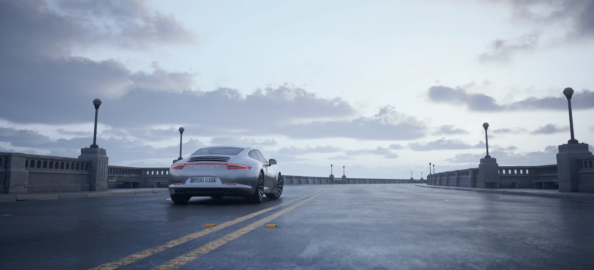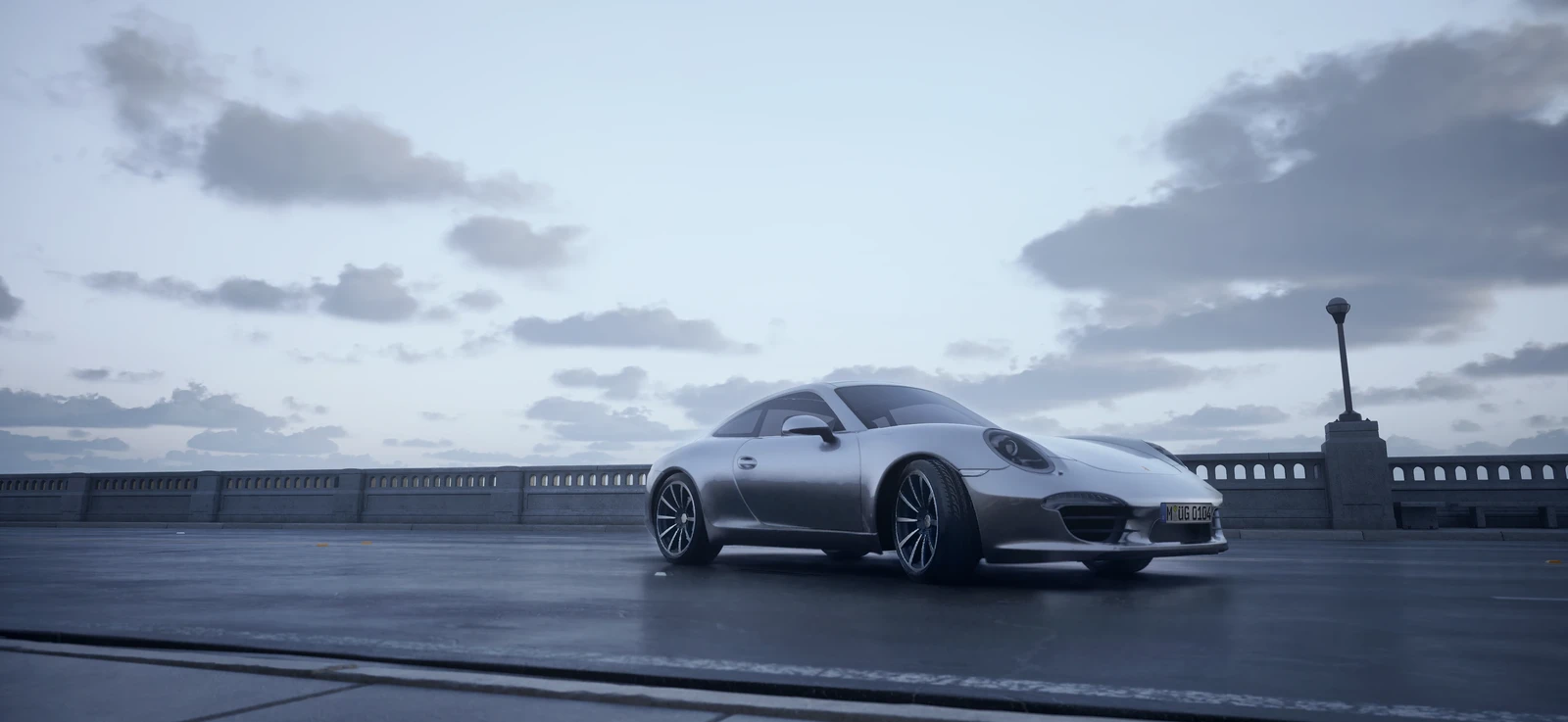 Unreal Engine 5 Lumen. I used Ultra Dynamic Sky for the sky, lighting and material wetness. Porsche Careera by Lionsharp Studios. Automotive Bridge Scene by epic games.